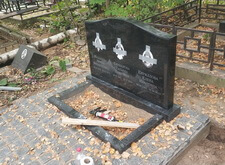 Приступаем к монтажу памятника. Привезли уже готовое надгробье, водрузили его на сделанное заранее основание, укрепили.