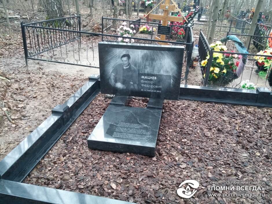 В итоговой версии памятника на надгробной плите появилась эпитафия написанная специально для Виктора. Земля прикрыта мульчей коры сосны.