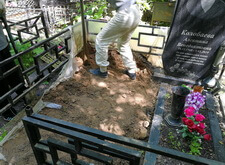 После измерений и согласования макета надгробья с клиентом возвращаемся на участок.