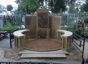 На мой взгляд - это отличная реализация идеи персонального памятника Владимиру. Основная задумка – это амфитеатр, арена гладиаторов. Но когда вопрос коснулся денег, стало понятно, что у Ирину (жена Владимира) таких ресурсов нет. Нам пришлось отсечь все лишнее и прийти к более простому варианту. Забегая вперед скажу, что всю сумму на изготовление памятника пожертвовала Федерация Самбо.