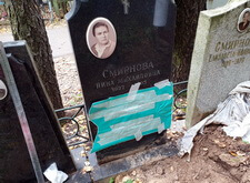 На данном месте захоронения нам предстояло нанести на надгробье дополнительные надписи, а также отремонтировать сломанное во время последних похорон ограждение. Когда мы приехали на участок, то помимо памятников с именами покойных там стояли таблички, содержащие информацию ещё о двух усопших.