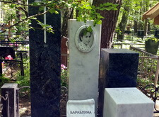Так выглядело место захоронения на момент окончания работы: деревянный крест покрыт защитным раствором; мраморные изделия отшлифованы и покрыты гидрофобной субстанцией, стыки элементов промазаны белым герметиком; полые столбики, восстановлены; в цветнике заменена земля и посажен газон.