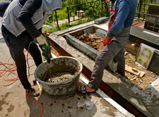 Далее устанавливаем подставки под памятники, заливаем их бетоном и ещё раз кладём подложку.