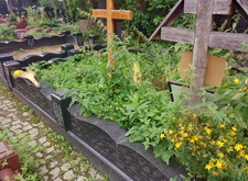 Далее мы установили мраморный крест, который отдельно приобретал сам клиент, а также вернули на место гранитное ограждение, предварительно его подрезав.