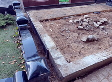 После того, как работа была проведена, клиент посчитал, что в задней части места захоронения требуется дополнительное укрепление. Мы вкрутили пять дополнительных свай, сварили новую сетку и залили ещё одну площадку, которая будет являться основанием для памятников.