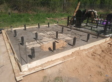 В одном из углов участка специально оставлена прямоугольная ниша. По периметру места захоронения залили опалубку, немного возвышающуюся над основанием.