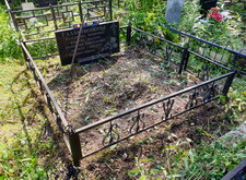 Первым делом мы принялись за уборку: удалили всю траву с территории места захоронения, а также пропололи периметр могилы, облегчив доступ к ограждению. Сорняк мы упаковали в мешки и в дальнейшем вывезли с территории кладбища.